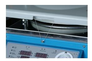 到達開蓋的溫度后,用左手扶壓住機蓋,右手手指拉出器蓋正前方缺口內的鋼絲繩。(見圖一)